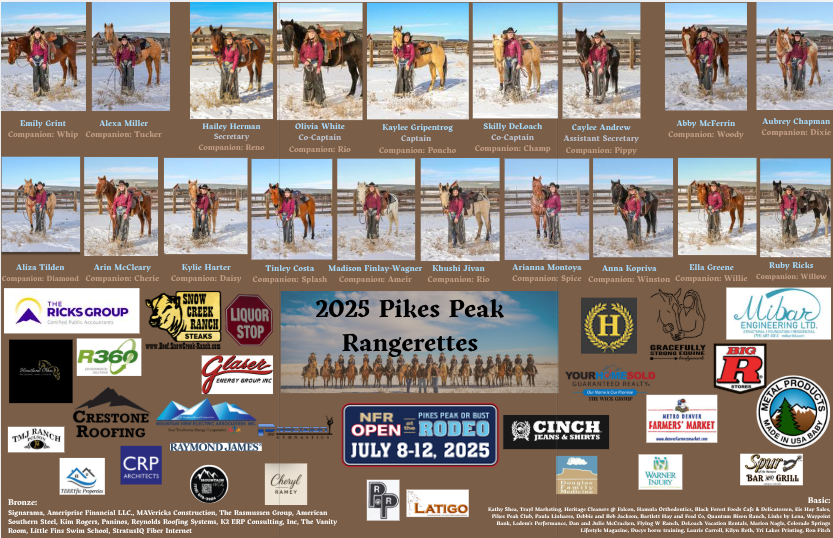 I have enjoyed supporting the Pikes Peak Rangerettes and helping them grow to their fullest potential. My goal for the team is to help them improve their horsemanship, teamwork and leadership abilities. I’m excited to continue to work with the Rangerettes and be apart of this team!